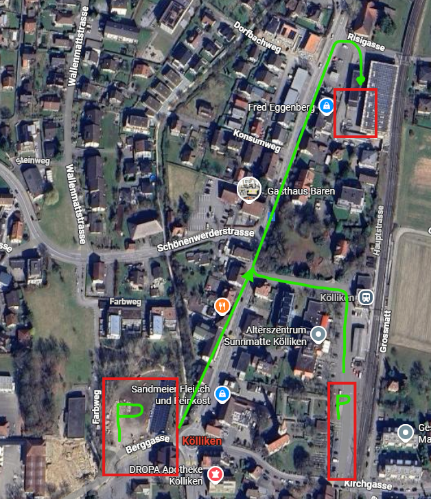Parkplatzmöglichkeiten bei der Gemeinde oder bei dem Bahnhof Kölliken